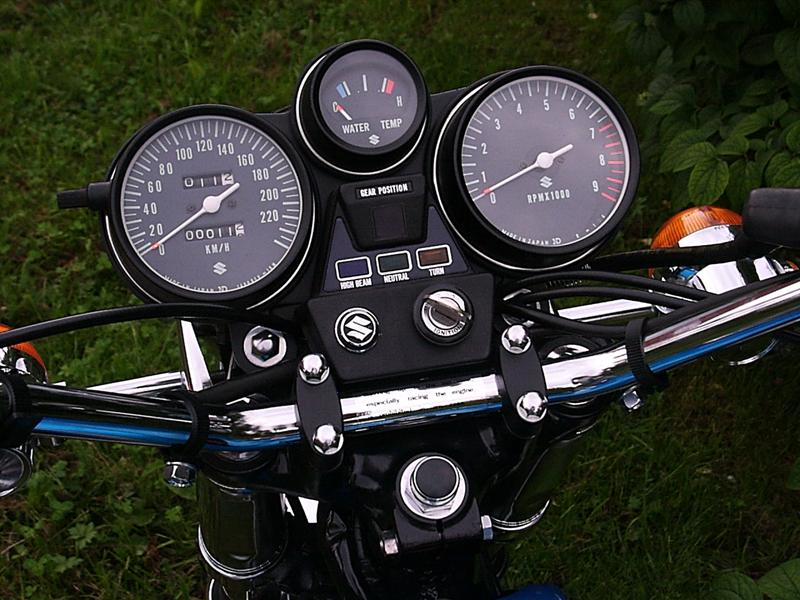 a high quality repro of the GT750 side cover badge with flake finish GT lettering. April 27, 2005 Snow is gone and spring is here. Here is a movie showing a few scenes from the Classic Suzuki Club Scandinavia (CSCS) annual spring meet outside Stockholm. February 10, 2005 The bike is in its winter sleep, about three months until spring is here. Mileage is now 3990 kilometres. I haven't been updating these pages lately but here is a recollection of what happened since May 28, 2004 : I used it at the MCHK (Motor Cycle Historical Club) "Stocholm Rally", a great